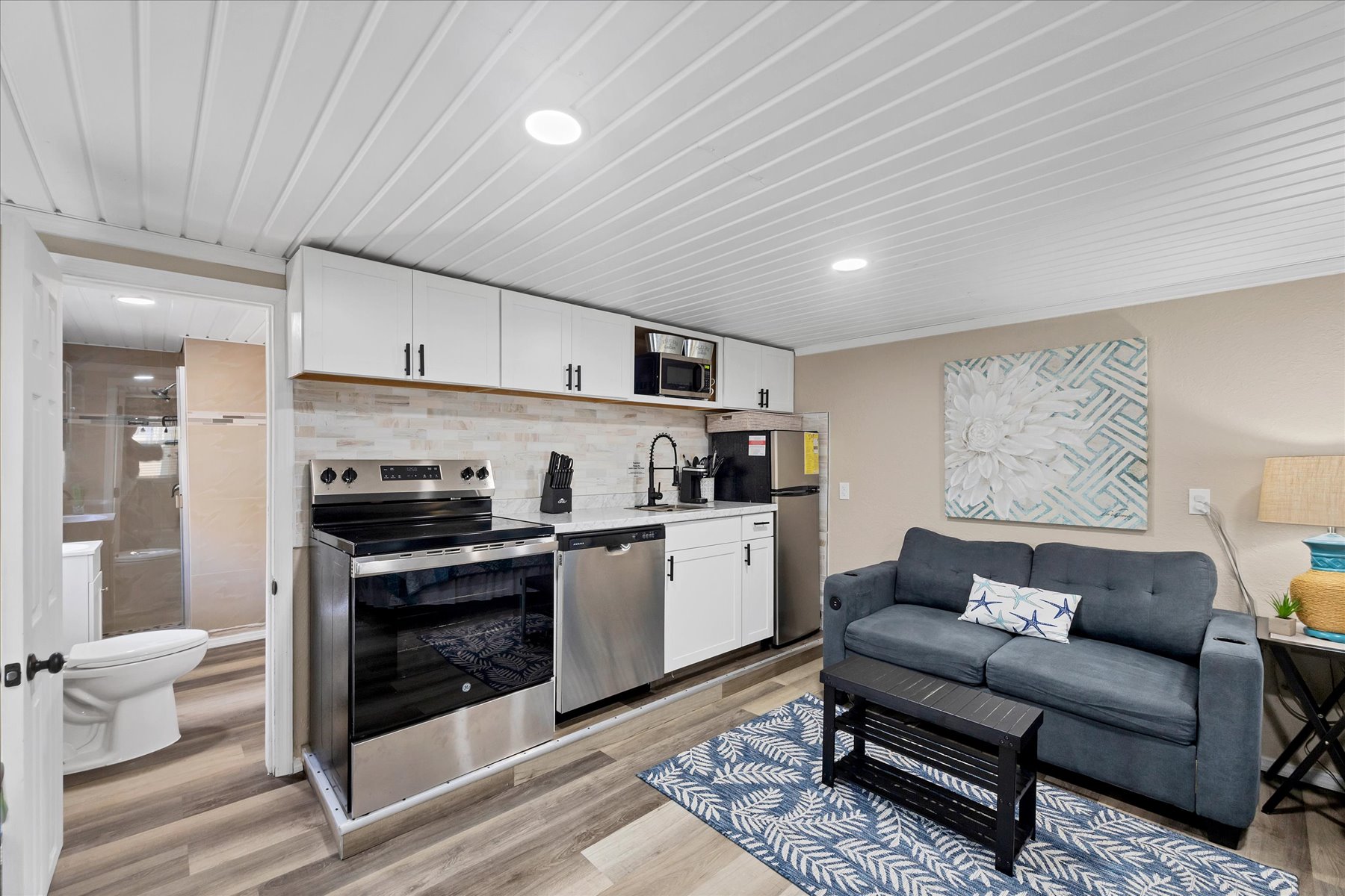 Thoughtfully designed by our interior designer, this cozy studio blends comfort, efficiency, and coastal charm.