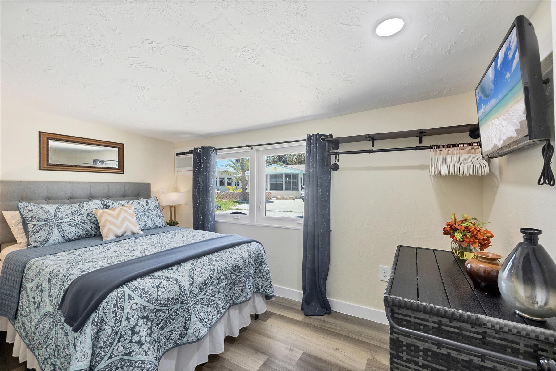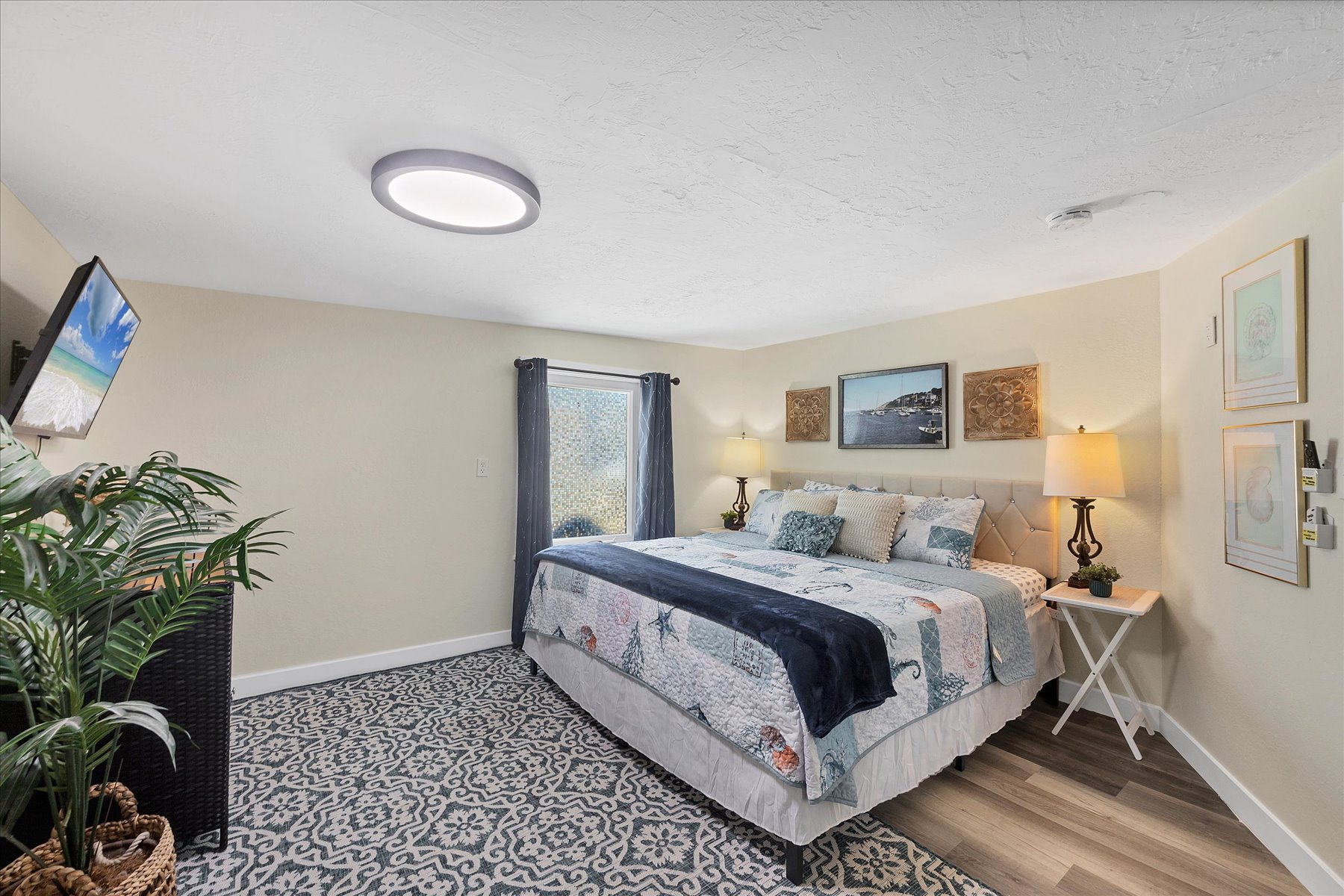• Primary Bedroom: King bed, plush new mattress, quality cotton linens, Smart TV