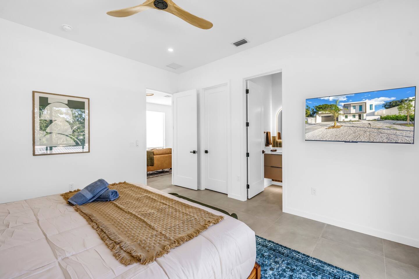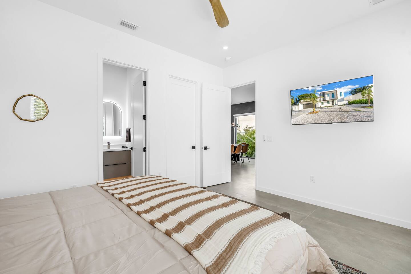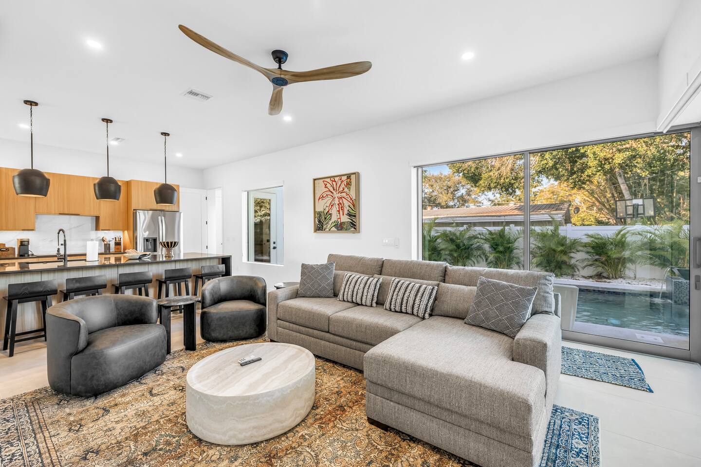 This home is made for easy group stays. With 7 beds (5 King , 1 Queen, 1 bunk) and en-suite bathrooms in each of the 5 spacious bedrooms, everyone gets privacy and space. There’s also a pool bath and half bath so no one’s waiting. The open living area and kitchen make hanging out simple, and the backyard has a private pool and lounge space. Close to Siesta Key, restaurants, and downtown, it’s the perfect spot to relax, explore, and make memories. Lido Beach and Siesta Beach are just a 10 to 20-minute drive away, depending on traffic.